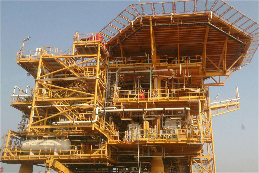 The 1025-ton jacket of the residential platform which was built in the Naft Sazeh Qeshm Co. yard was installed in its place in late June 2017.