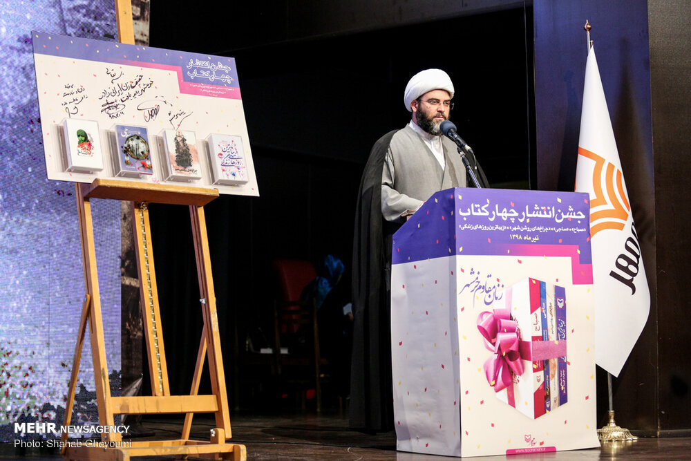 Photo: IIDO director Hojjatoleslam Mohammad Qomi speaks during the unveiling ceremony of four books on Khorramshahr women’s resistance at the Art Bureau in Tehran on July 9, 2019. (Mehr/Shahab Qayyumi)