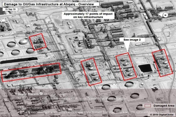 According to the New York Times, drone attacks by Yemen struck two key oil installations inside Saudi Arabia on Saturday, damaging facilities that process the vast majority of the country’s crude output and raising the risk of a disruption in world oil supplies.