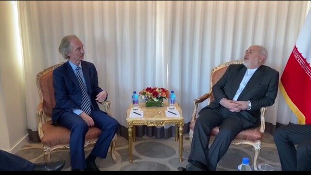 TEHRAN - Iranian Foreign Minister Mohammad Javad Zarif met with UN Special Envoy for Syria Geir Pedersen in New York on Friday discussing the latest developments in Syria and the Astana talks.