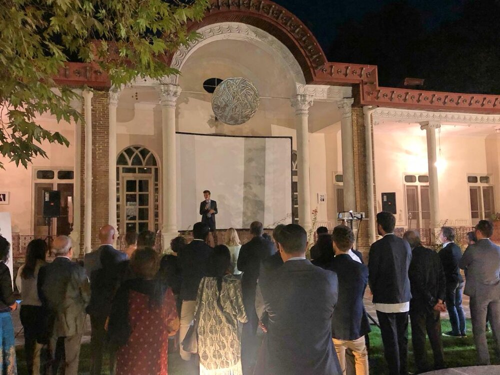 Photo: Italian Ambassador Giuseppe Perrone speaks during a ceremony held at his residence on October 4, 2019 in Tehran to introduce an Italian seat and furniture manufacturer.