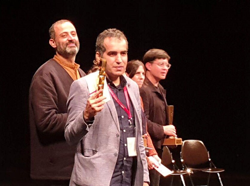 Photo: Iranian filmmakers Bahman Kiarostami (L) and Arash Es’haqi (C) accept their awards during the Yamagata International Documentary Film Festival in Japan on October 16, 2019.