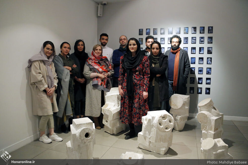 Photo: Nominees for the Vista Contemporary Art Prize pose with curator Parisa Pahlavan (4th L) at Tehran’s Vista Gallery on January 11, 2020. (Honaronline/Mahdieh Babai)