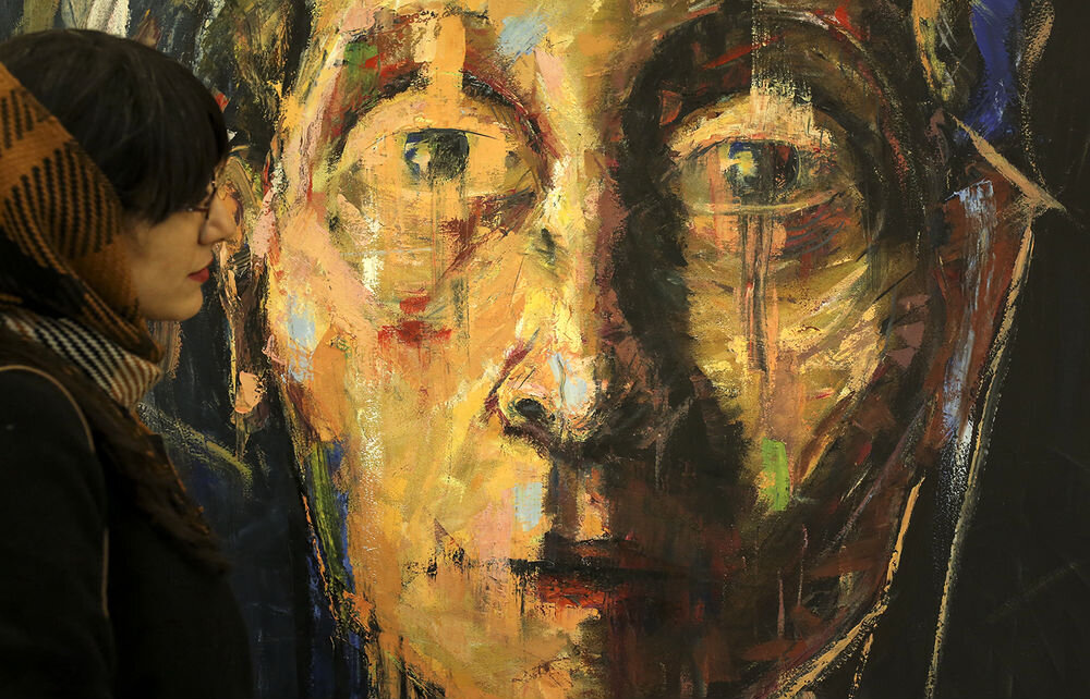 Photo: An art aficionado visits an exhibition of artworks by some top Iranian Armenian artists at Tehran’s Mehrsun Art Gallery on February 14, 2020. (Borna/Sara Abdollahi)