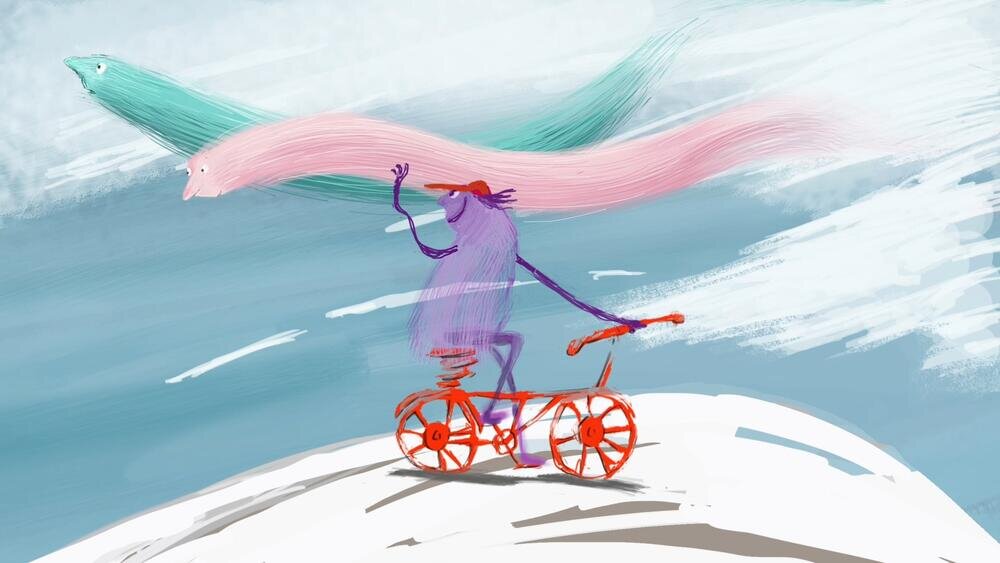 The film tells the story of a young wind that comes into possession of a bike, which helps the wind to blow even faster without spending much energy, and to truly enjoy its time.