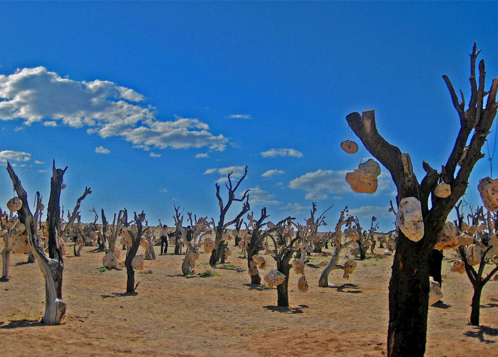 In response to this loss, he started doing something unearthly; hanging stones from dry tree branches.