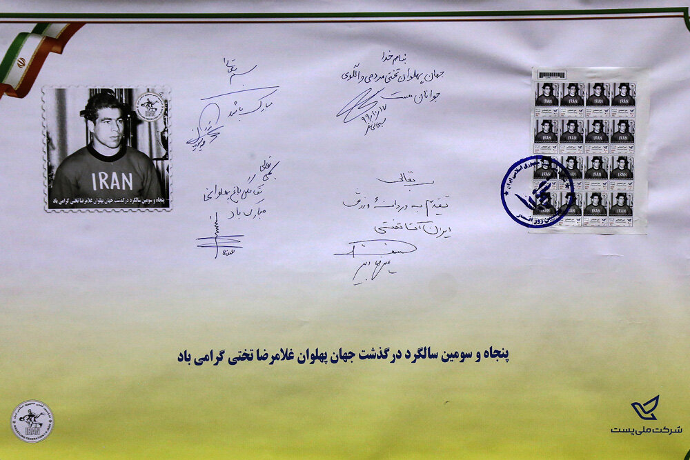Furthermore, a new commemorative postage stamp was unveiled coinciding with the Takhti’s 53rd anniversary at the Khane Koshti (Wrestling House) with participation of head of wrestling federation, Alireza Dabir, and Ramezanali Sobhanifar, Managing Director of National Post Company.