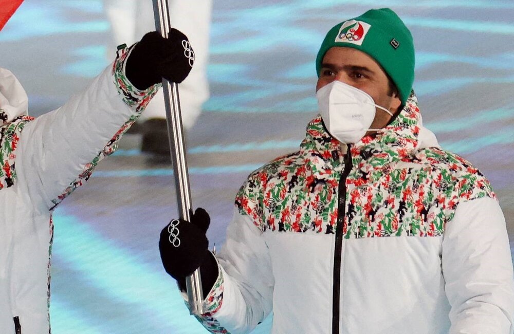Saveh Shemshaki carried Iran’s flag at the opening ceremony in Beijing.