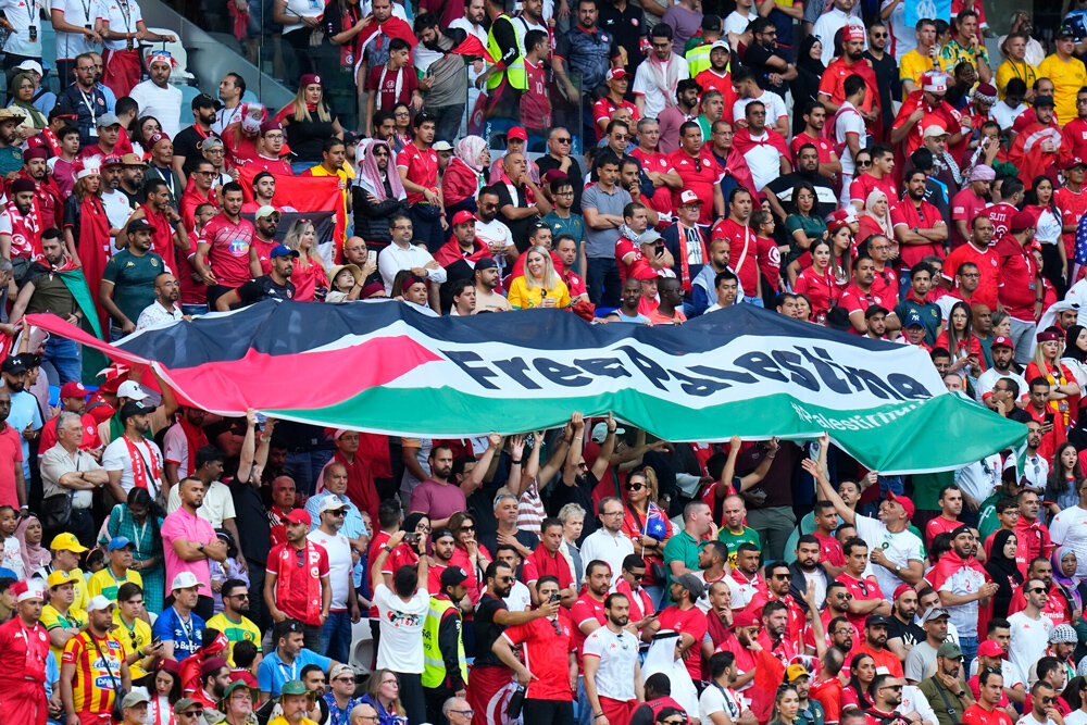 On the other hand, the widespread support for the oppressed Palestinian people has been displayed with Palestinian flags being waved inside and outside stadiums despite the fact that Palestine did not qualify for the tournament. Fans from many Arab and Islamic countries have carried Palestinian flags prominently at matches and worn them as capes around their necks.