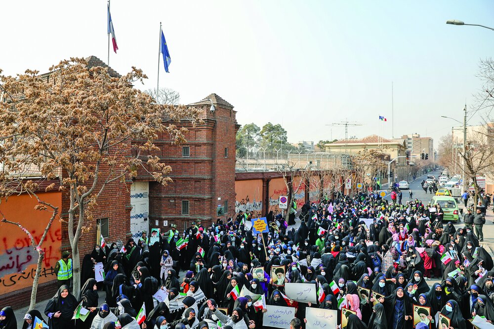 Students gather outside French embassy in Tehran
