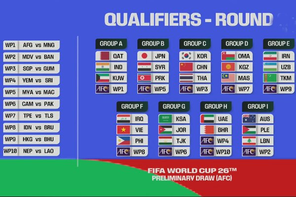 TEHRAN - The stage is set for Preliminary Joint Qualification Round 2 for the FIFA World Cup 2026 and AFC Asian Cup Saudi Arabia 2027 following the draw at the AFC House in Kuala Lumpur, Malaysia on Thursday.