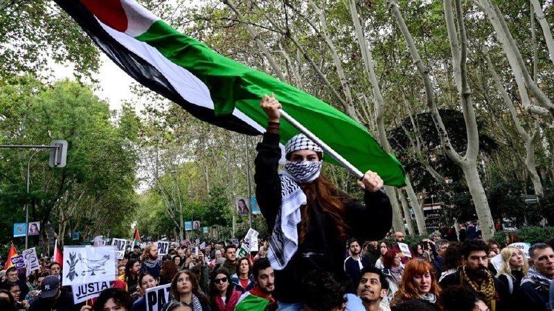 People in Spain protested against Israeli war crimes once again on Monday.