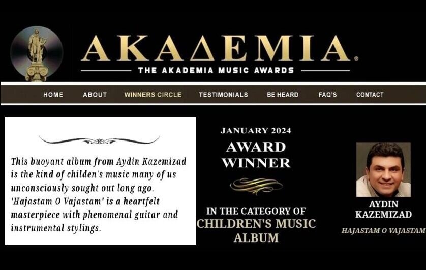 The Akademia Music Awards accolade describes Aydin Kazemizad's album as a long-awaited children's musical masterpiece, incorporating exceptional guitar work and extraordinary musical styles.