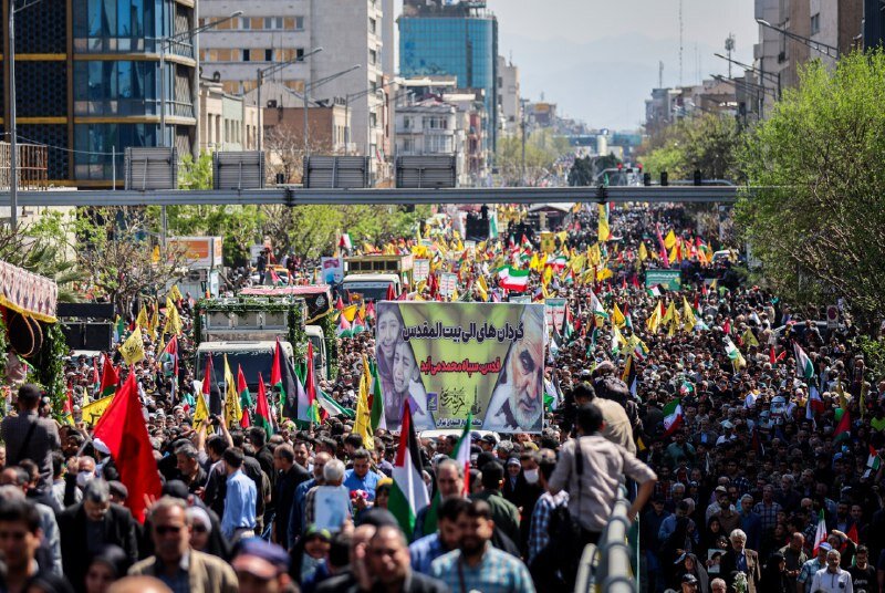 In Tehran, the demonstrations coincided with a funeral procession for the victims of an Israeli airstrike on the consular building of the Iranian embassy in Damascus. Participants carried images of the martyrs and banners with slogans denouncing Israel and the United States.