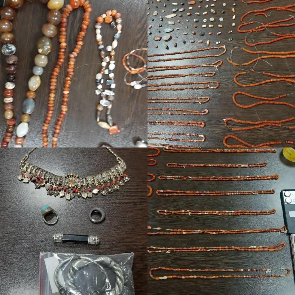 The operation led to the seizure of 1,956 artifacts, including valuable and semi-precious stone beads made from agate and glass paste, which were hidden in the smugglers’ suitcases.