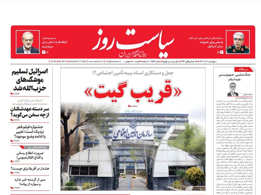 In an analysis, Jam-e-Jam discussed the arrest warrants against Netanyahu and Yoav Gallant by The Hague-based International Criminal Court. It wrote: The Leader of the Revolution, in a meeting with the Basiji members, emphasized that the arrest warrants against Netanyahu and his sacked war minister Gallant is not enough, suggesting that other Zionist criminal leaders should face justice and be sentenced to death. The reference of the Leader of the Islamic Revolution to the necessity of issuing death sentences against Netanyahu and other war criminals of the Zionist regime is derived from the will of two billion Muslims around the world who seek strong punishment against these criminals. The arrest warrant did not reduce the anger of the Muslim nations and the free people of the world. They would expect a more severe punishment for the war criminals. The Leader of the Islamic Revolution also pointed to the inevitable victory of the Axis of Resistance against the Zionist regime. Although this victory will be costly to the Muslim nations in the region, it shows that the will to resist has always prevailed over the arrogant countries throughout history.