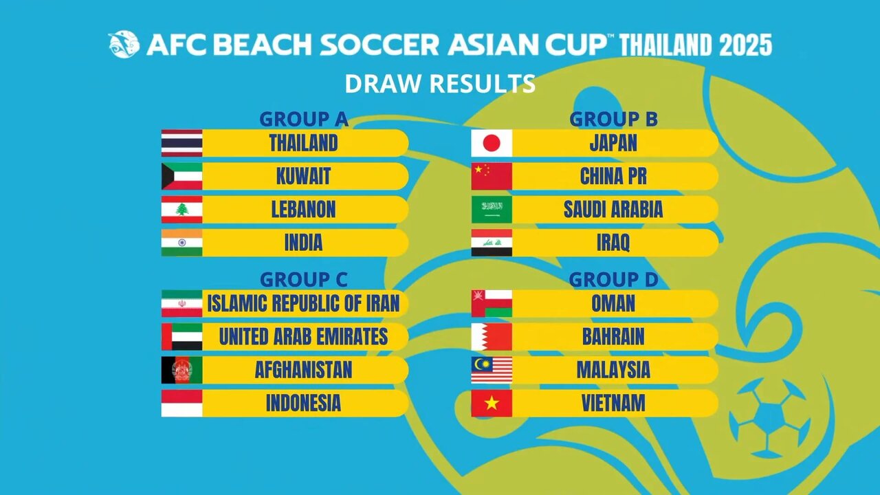 TEHRAN - The stage is set for the AFC Beach Soccer Asian Cup Thailand 2025 following the draw at the AFC House in Kuala Lumpur, Malaysia on Thursday.