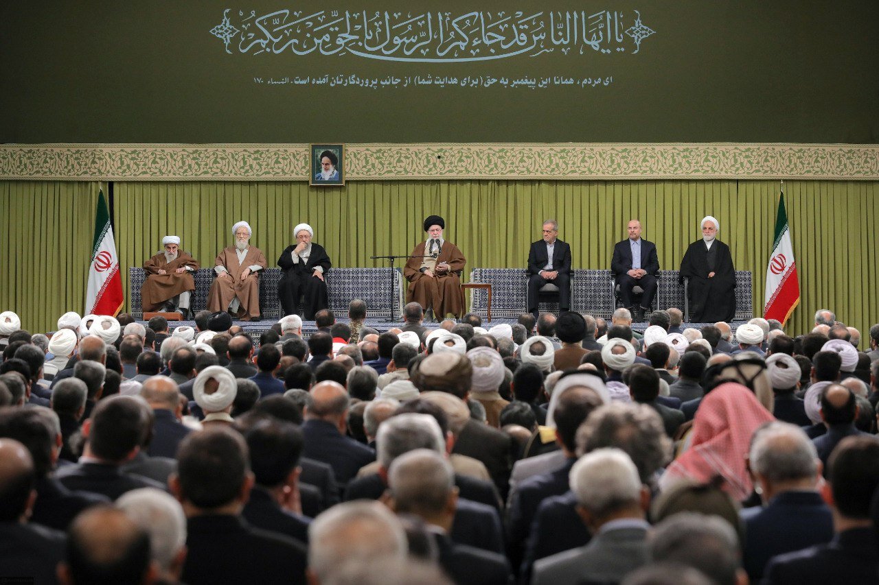 Ayatollah Khamenei opened the meeting by extending his congratulations to the Iranian nation, the Islamic Ummah, and all freedom-seekers around the world on the occasion of Eid al-Mab'ath. He highlighted the significance of this celebration coinciding with Bahman [February], a month that marks the victory of the Islamic Revolution, which itself emerged from the event of the Bi’tha.