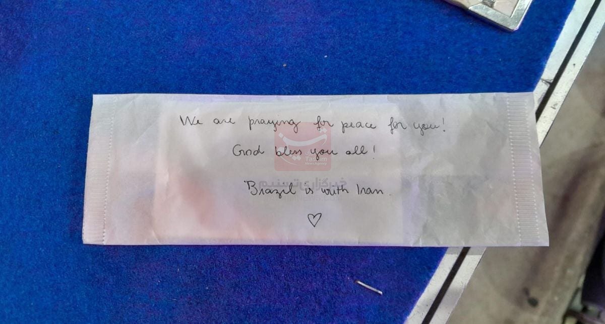 "We are praying for peace for you. God bless you all. Brazil is with Iran."