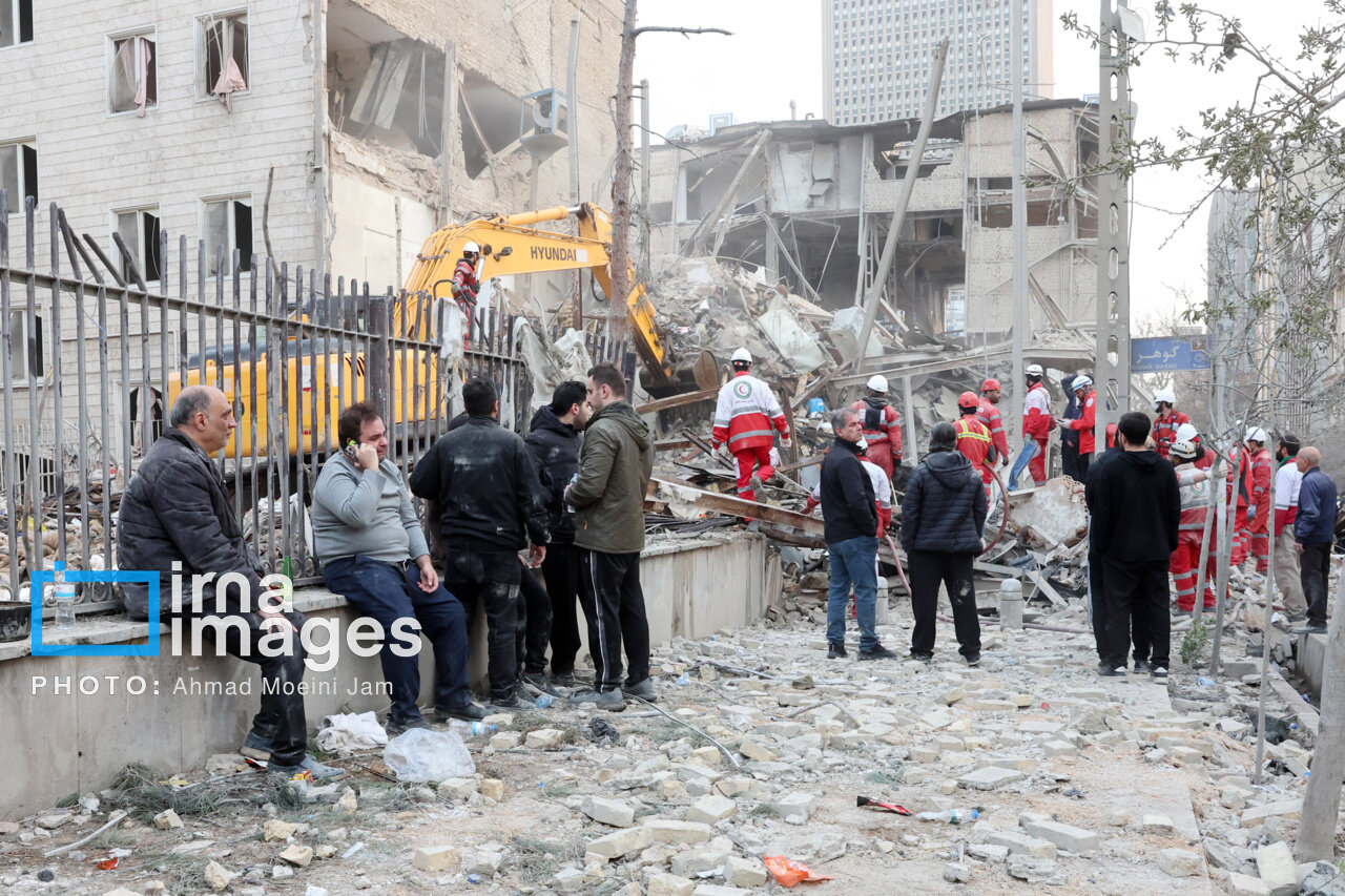 The staff member of Tehran Municipality in cooperation with firefighters and the IRCS staff help remove debris, save trapped individuals, and clear ways and roads.