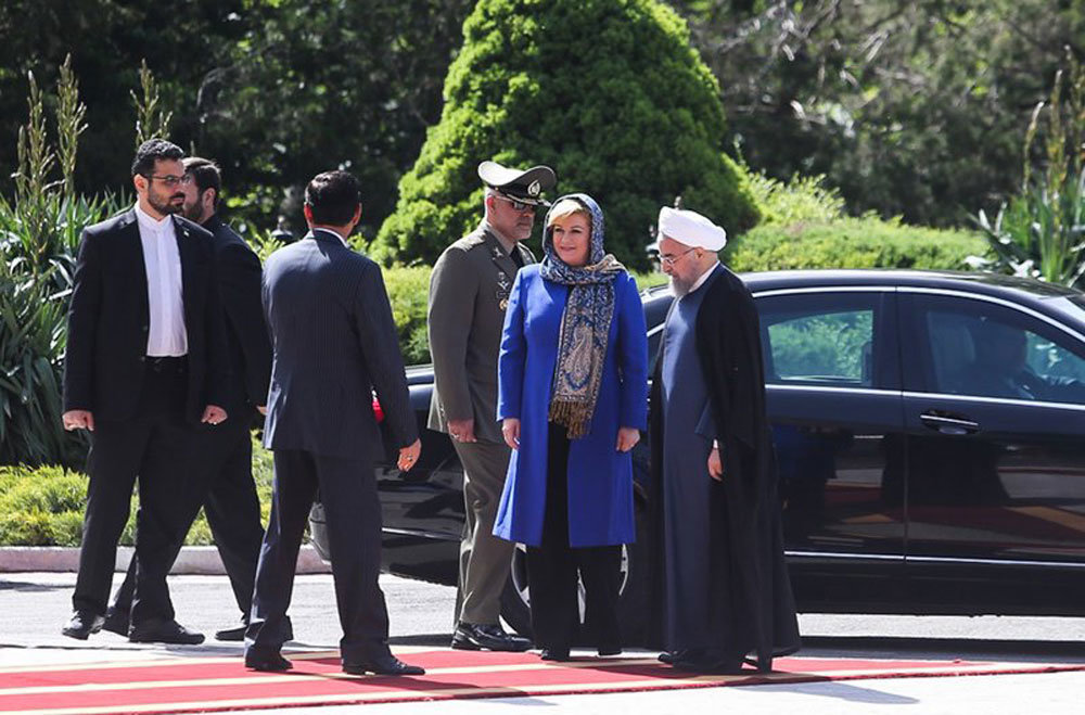 President Rouhani officially welcomes his Croatian counterpart Kolinda Grabar-Kitarovic at Sa’adabad presidential palace. / ISNA, Amin Khosroshahi