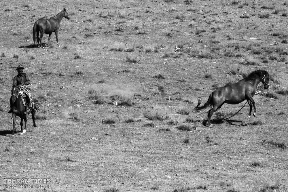 Turkmen horses are one of the most beautiful horse breed of Iran dominantly found in Turkmen Sahra, a region located in northeastern Iran bordering Turkmenistan. The Turkmen horse was originally an oriental horse breed from the steppes of Central Asia which is now extinct. Some horses bred in Iran and Turkmenistan today are still referred to as Turkmen, and have similar characteristics. The Turkmen horse is noted for its endurance, bravery and smartness. It has a slender body and the breed is actually one of the toughest in the world. They have a reputation for speed, endurance, intelligence, and a distinctive metallic sheen. Many theories have been formulated to explain why hair of the Turkmen horse and its descendants shines, but none explain why the this breed in particular benefitted from this genetic difference and why other horses would not. Although Turkmen horse breeding is a very popular among the Turkmen people the officials won’t take it very serious. Here are some photos depicting Turkmen horse breeding in Raz and Jargalan, North Khorasan province. Tehran Times/ Mohsen Rezaee