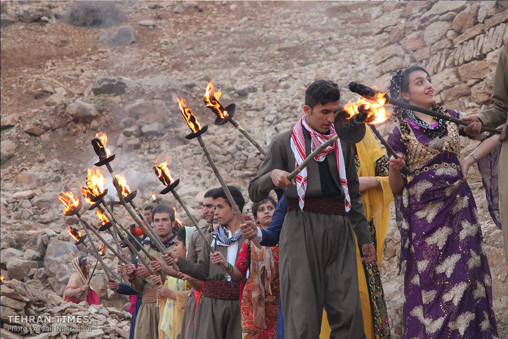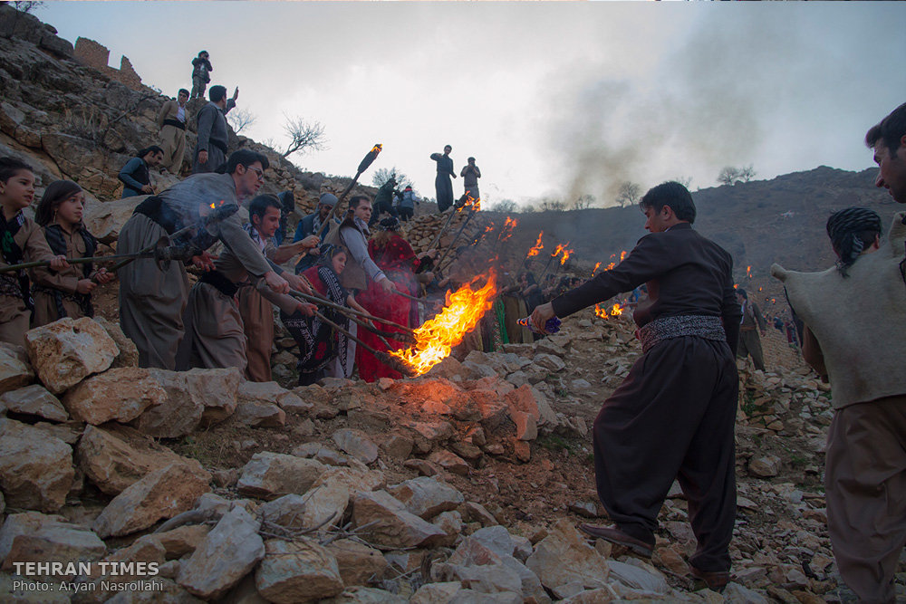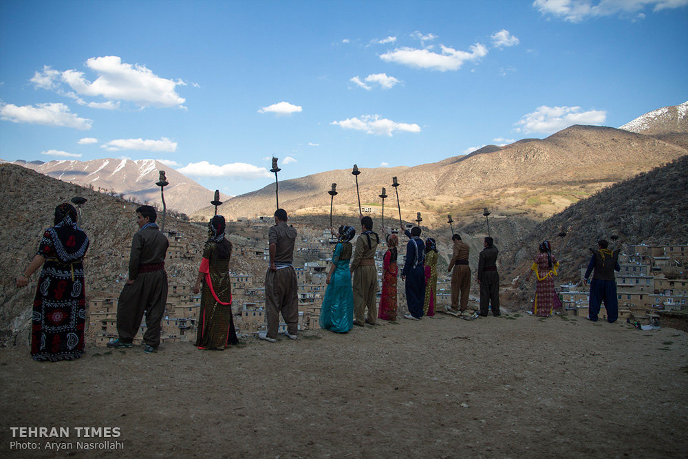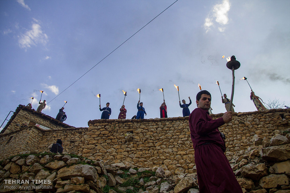 People in Palangan historical village, western province of Kurdestan, celebrate Nowruz festivities every year by the beginning of the spring. The youngsters carry blazing torches around the village and at the same time some other start big fire on the other side of the village. The festivities finally end with people performing traditional dances.Tehran Times /Aryan Nasrollahi