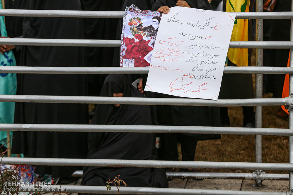 President Hassan Rouhani joined the public rallies in Tehran to mark the 40th anniversary of the Islamic Revolution and delivered a speech to the demonstrators. Tehran Times / Mohammad Mohaimeni