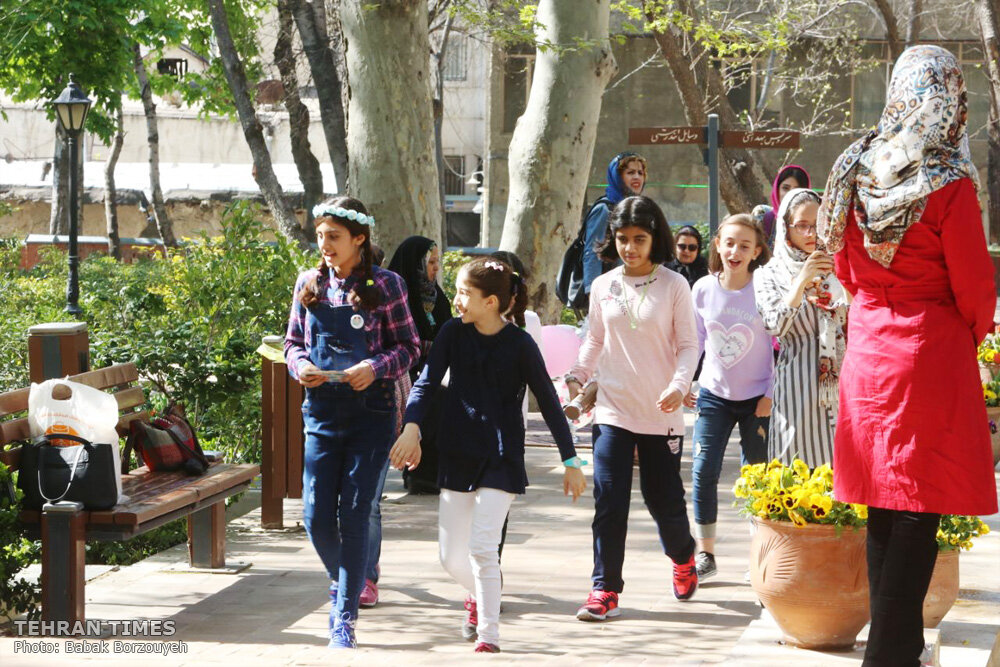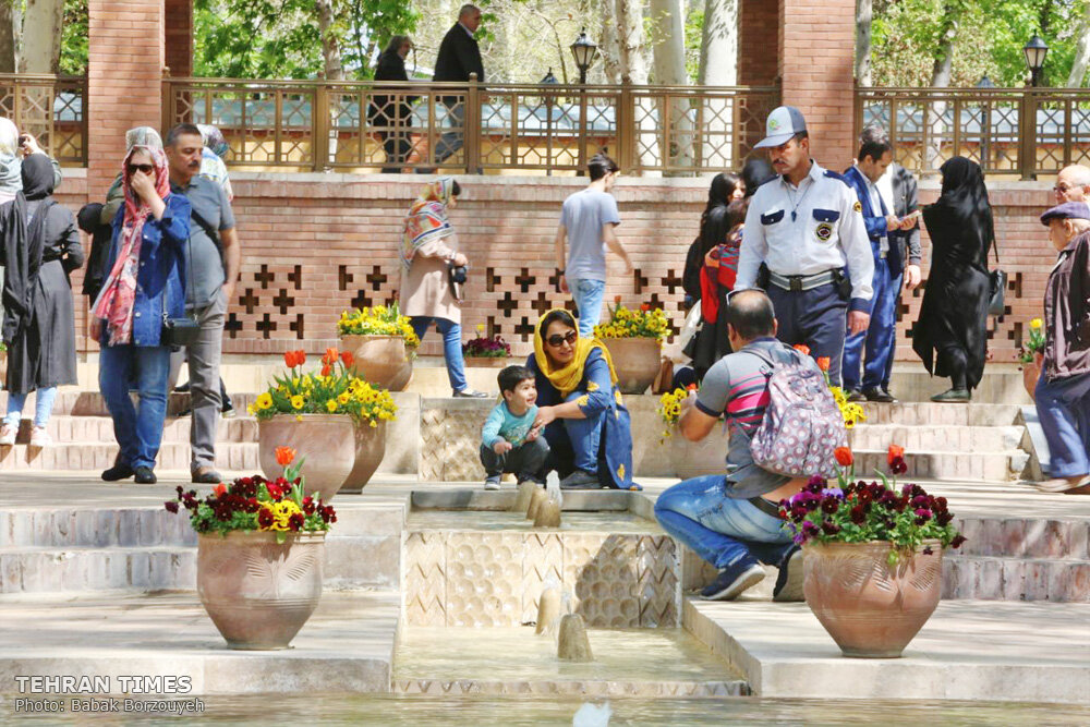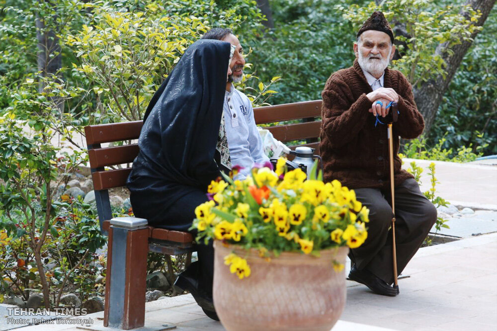 People revel in bright weather at the Iranian Art Museum Garden in northern Tehran on March 21, 2019, which marks the first day of the current Iranian year.