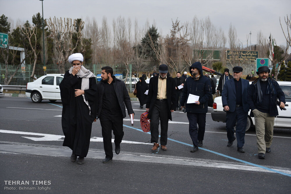 People walk toward the Imam Khomeini Mosalla to attend Tehran’s Friday Prayers, which is to be led by the Leader of the Islamic Revolution Ayatollah Ali Khamenei on January 17, 2020.