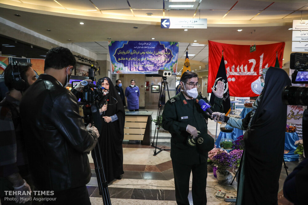 Photo collection depicts the unveiling ceremony for a domestically-manufactured electro-optical system at the Baqiyatallah Hospital in Tehran, April 5, 2020. The system, which remotely collects data from passersby, is aimed to check body temperatures in crowded areas monitoring coronavirus patients.
