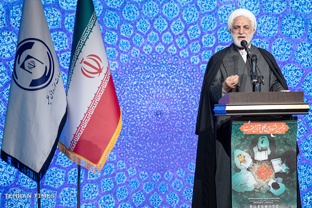 The closing ceremony of the 5th International Quran & Etrat Festival of Seminaries Service Center was held early on Thursday (Feb. 16, 2023,) at the Centre for the Intellectual Development of Children and Adolescents with the presence of Hujjat al-Islam Gholam-Hossein Mohseni-Ejei, Head of the Judiciary, Hujjat al-Islam Mohammad Qomi, Head of Islamic Development Organization, Gen. Mohammad Shirazi, the head of Iranian Supreme Leader Ayatollah Khamenei's Military Office.
