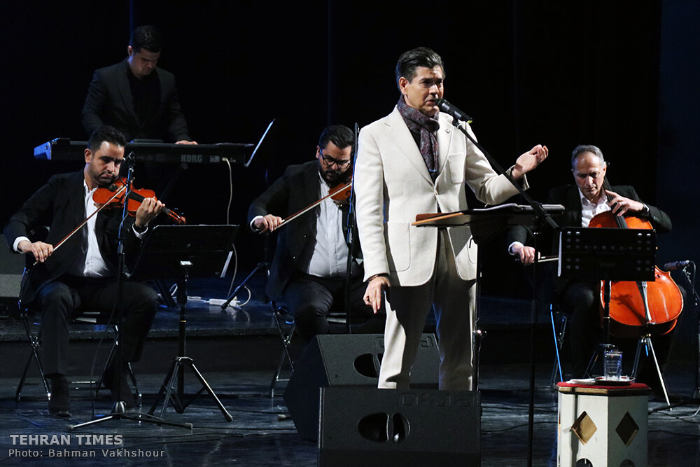 Celebrated traditional singer Salar Aghili performed on the stage of Vahdat Hall in Tehran on Monday, as part of the program of the first day of the 39th Fajr International Music Festival.