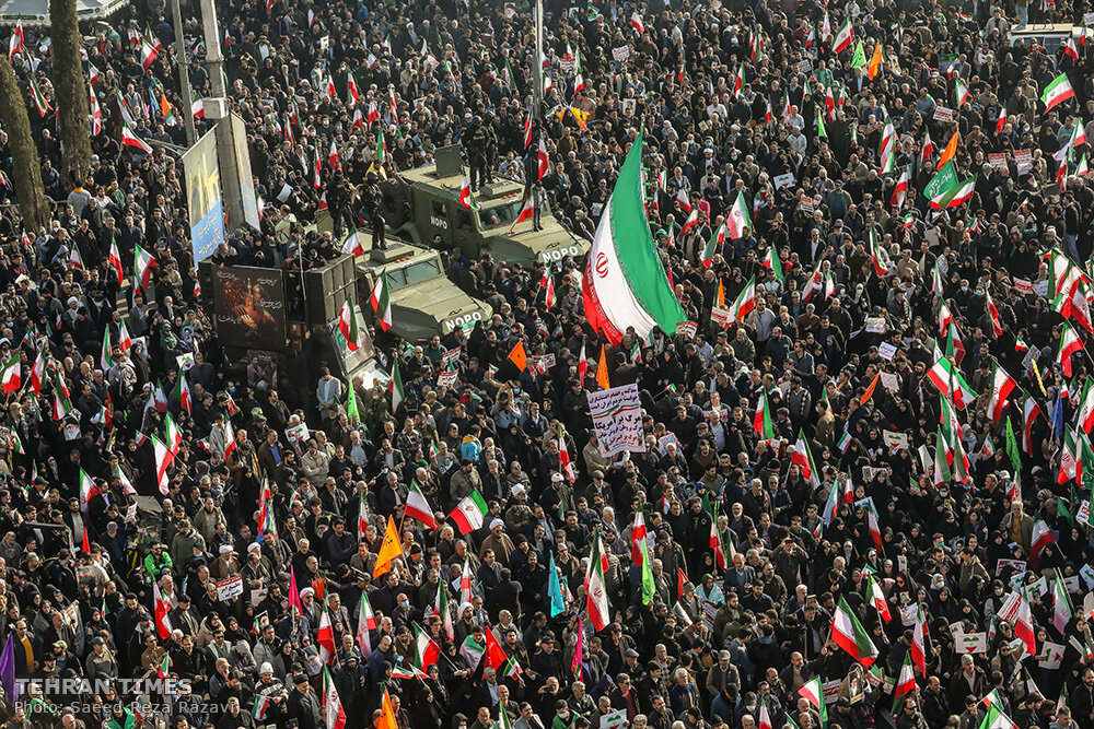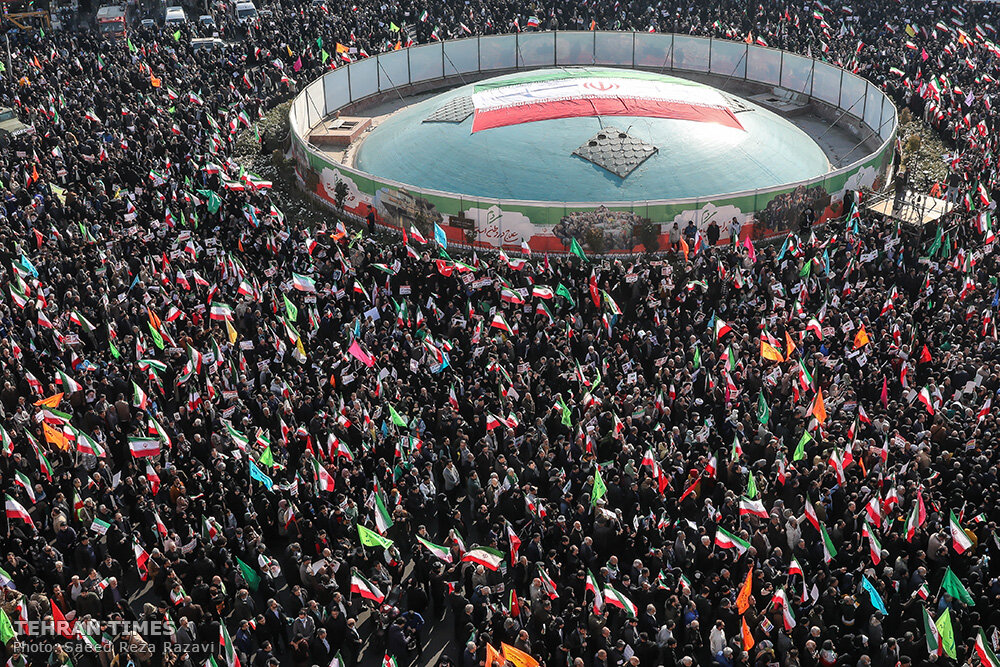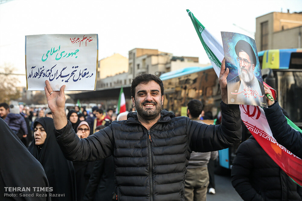 TEHRAN – On January 12, 2026, Iranians from all walks of life demonstrated across the country, with tens of thousands gathering in Tehran’s iconic Enghelab Square, showing their support for the Islamic Republic and expressing their condemnation of the recent foreign-instigated riots and terrorist attacks which led to the martyrdom of over 100 security forces and civilians.