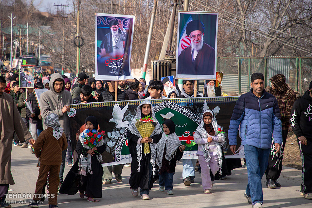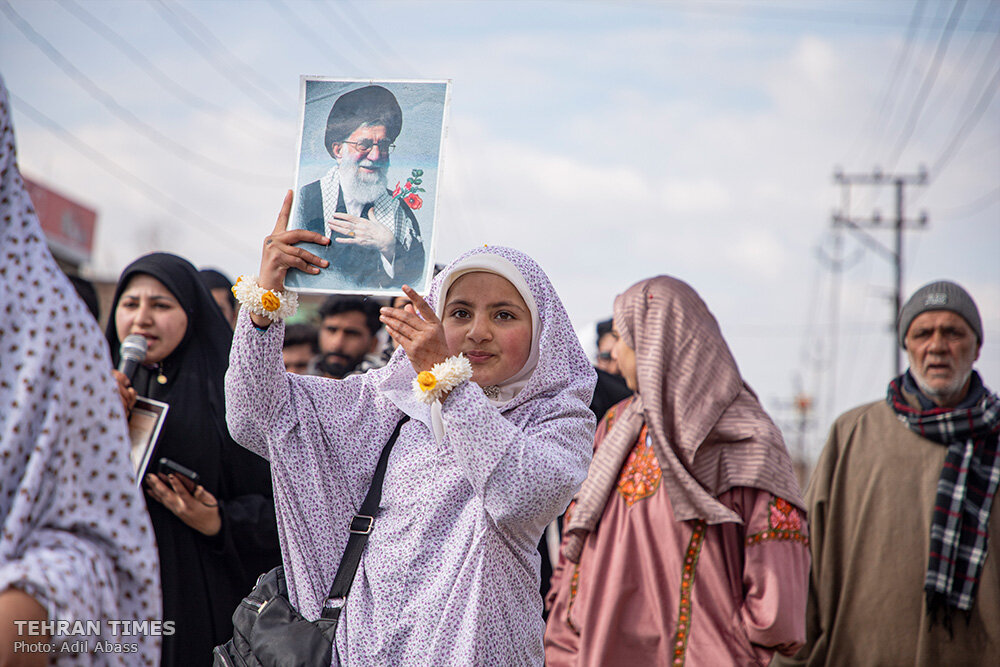 Kashmiris march in support of the Leader of the Islamic Revolution