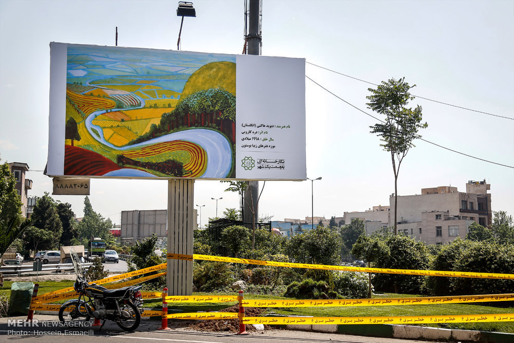 Photo: A billboard displays “Garrowby Hill” by David Hockney during the project “A Gallery as Large as a City” in Tehran on May 7, 2015. (Mehr/Hossein Esmaeili)