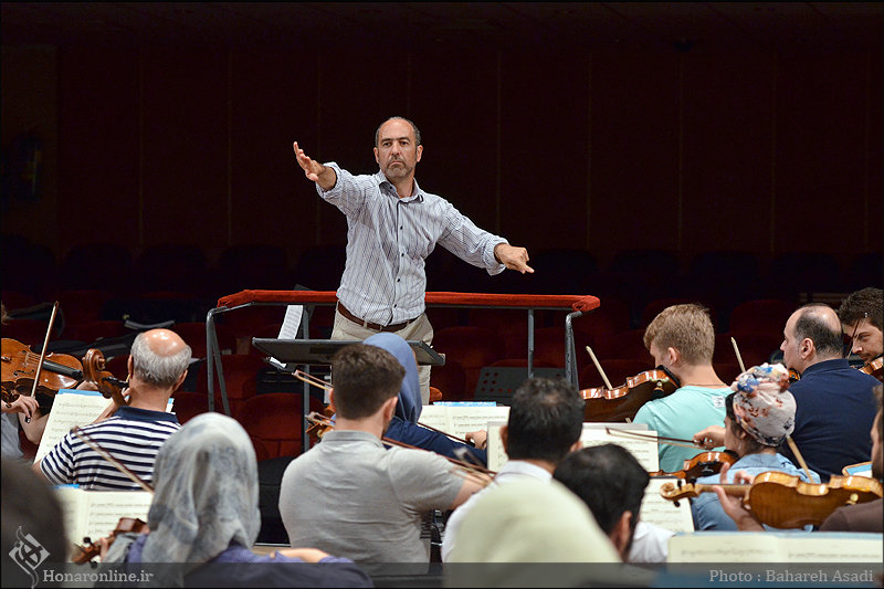 Photo: Italian maestro Damiano Giuranna conducts musicians from the World Youth Orchestra and the Tehran Symphony Orchestra during a joint rehearsal at Tehran’s Rudaki Hall on August 3, 2016. (Honaronline/Bahareh Asadi)