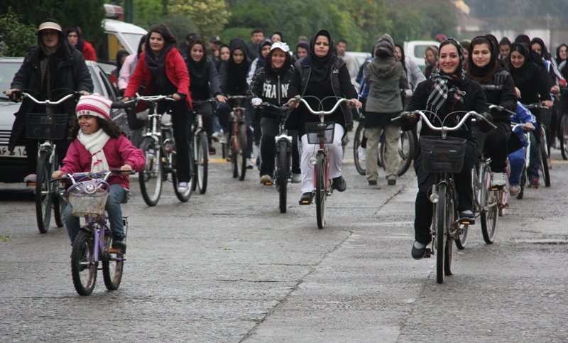 Although women in Marivan will soon have their own exclusive space to ride bicycles and use other sports equipment provided for them at a ‘women-only’ park, that does not seem to have addressed the actual issue, which is the fact that women, as much as men, need to use bicycles, instead of cars or other means of transport, to commute. It is all well and good to have a special place to ride bicycles as a form of exercise, but the women who were stopped by the police had not come out to the streets with their bicycles in support of keeping fit and healthy – they were there as part of an environmental campaign, dubbed ‘Tuesdays without Cars’.