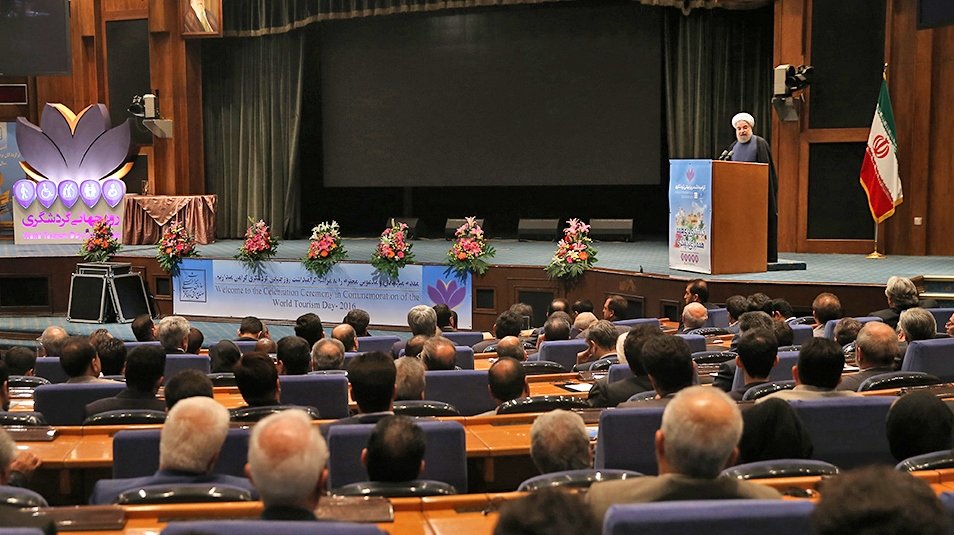 In the picture above President Hassan Rouhani addresses attendees at a ceremony celebrating the World Tourism Day held at the IRIB International Conference Center in northern Tehran on September 26, 2016.