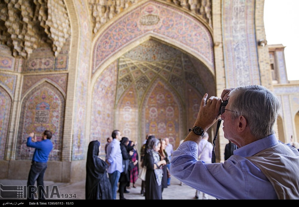 PHOTO: A Western traveler snaps a photo of the intricate stuccowork that embellishes courtyard of Nasir al-Mulk Mosque in Shiraz, October 8, 2016. (IRNA/Reza Qaderi)