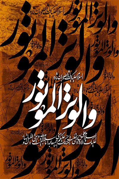 The collection of fifteen huge posters created by Ali Vazirian features the tragedy of Ashura variously through letters, paintings, calligraphy and graphic designs.
