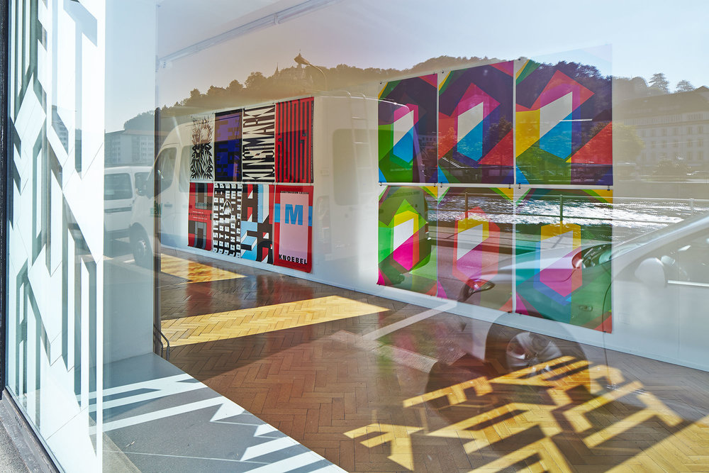Photo: Works by Swiss graphic designer Melchior Imboden are on display in an exhibition.