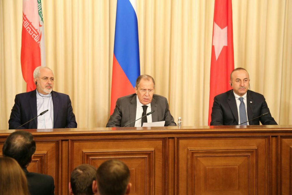 During the trilateral meeting, Iranian Foreign Minister Mohammad Javad Zarif said that fighting terrorism in Syria or anywhere else must go unabated.