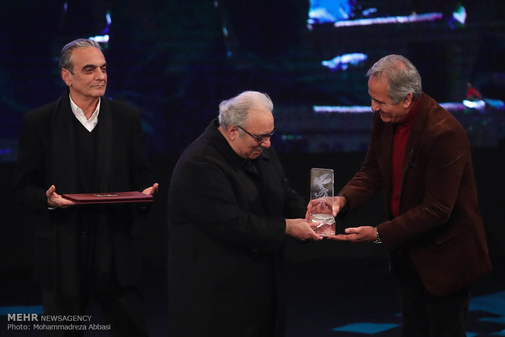 Veteran producer Gholamreza Musavi was next to receive an award. He thanked his wife who has borne all the problems throughout their lives and also expressed his respect to actress Taraneh Alidoosti who is boycotting the Oscar Ceremony over Trump’s immigration policy.