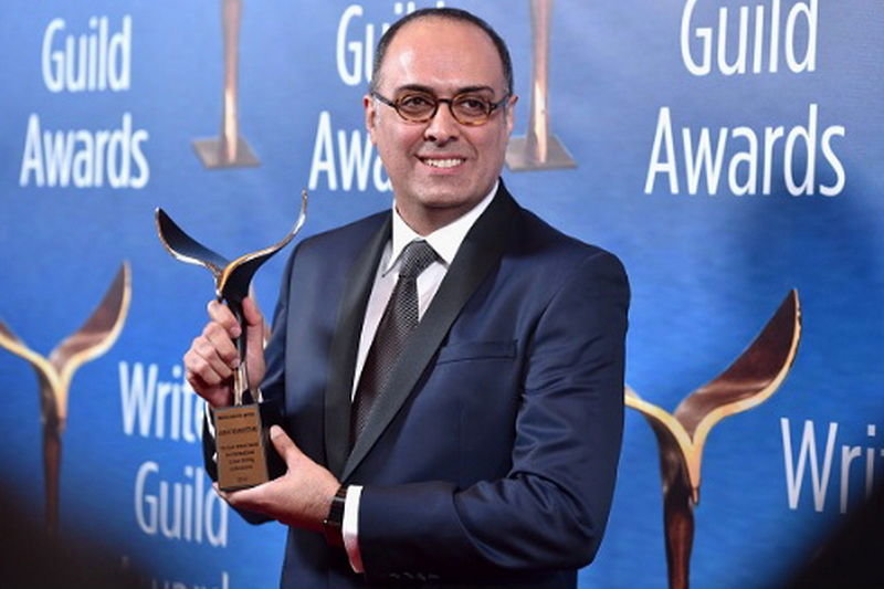 Photo: Ahmad Kiarostami, the son of auteur Abbas Kiarostami, accepts the Jean Renoir Award for International Screenwriting Achievement during the Writers Guild of America Awards on behalf his father on February 19, 2017.