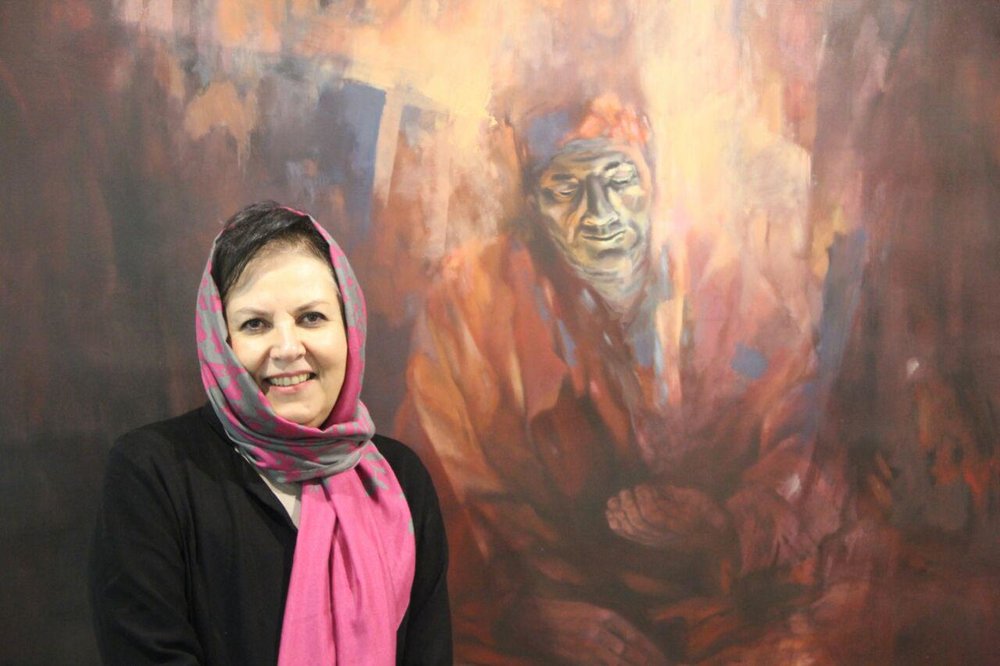 Photo: Painter Shohreh Ghanbari poses in an exhibition of her new collection “Haji Firuz” at Tehran’s Elaheh Gallery on February 10, 2017. (Honaronline/Ramona Mirian)
