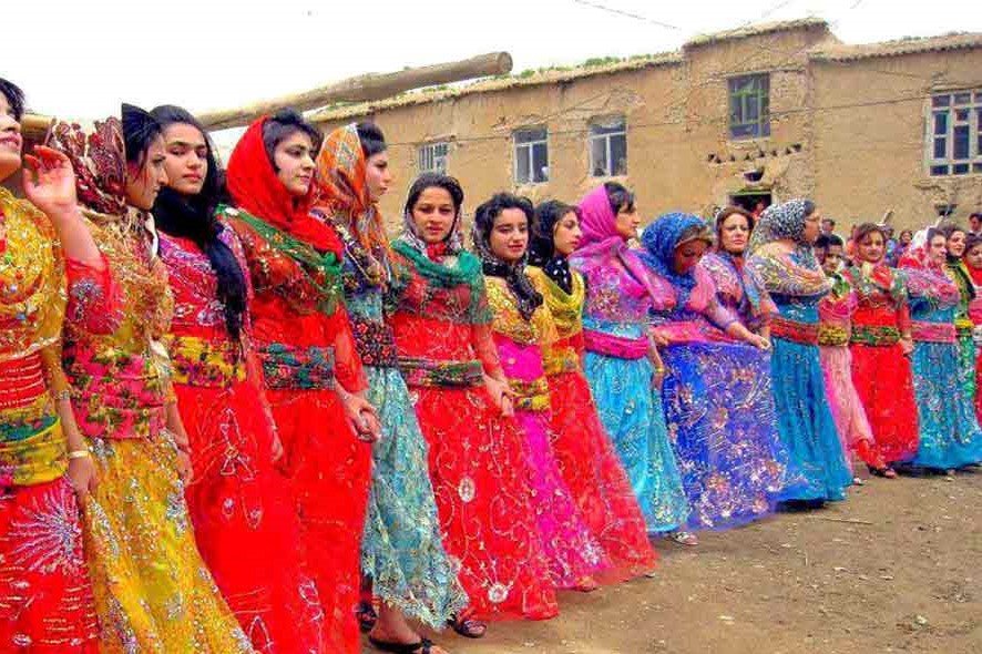 The costume of Iranian Kurd women is composed of gowns, base layers, head covers, and some ornaments.
