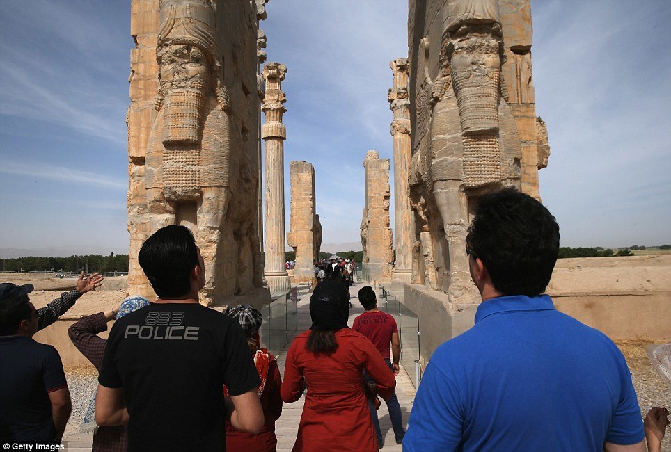 PHOTO: Tourists walk through the Persepolis archeological site in southern Iran. It was a ceremonial capital of Persian Achaemenid Empire (c. 550–330 BC).