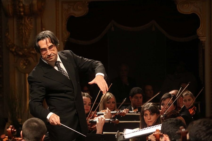 Photo: Riccardo Muti conducts the Giovanile Luigi Cherubini Orchestra during a concert.