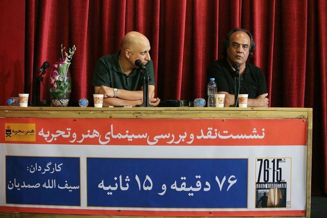 Photo: Director Seifollah Samadian (R) and critic Shahin Amin attend a review session for “76 Minutes and 15 Seconds with Abbas Kiarostami” at the Iranian Artists Forum in Tehran on August 13, 2017. (ISNA)